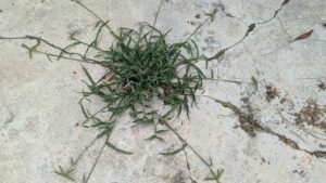Crabgrass seeds can remain viable in the soil for up to 15 years and often blow along the streets, resting near driveways until they have the right amount of soil contact, water, and heat.